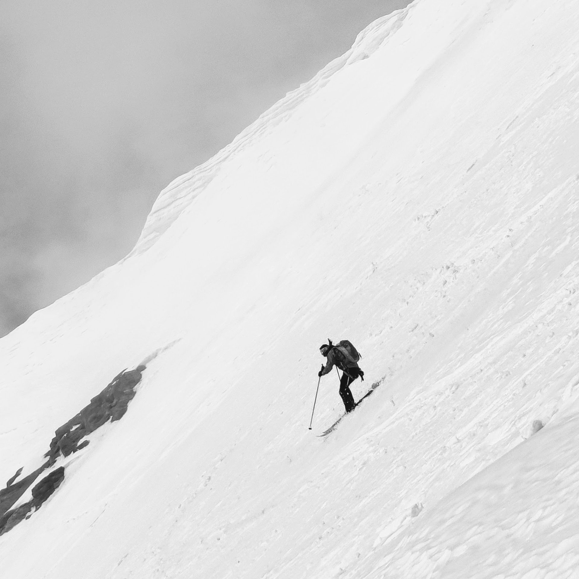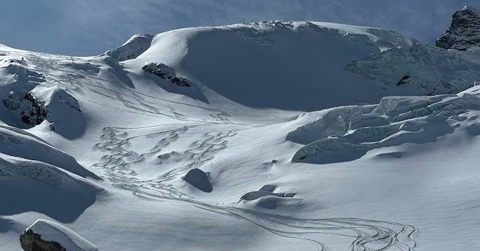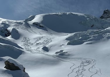 Freeride attraverso uno spettacolare passaggio tra ghiacciai e pareti severe, riservato a sciatori esperti in cerca di powder.